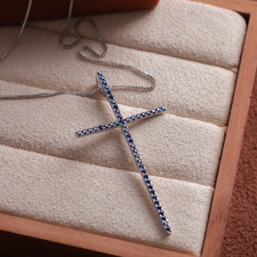 Encante-se com esse colar!Este lindo colar CRUZ CRAVEJADO DE ZIRCÔNIAS PRETO é feito com LATÃO BANHADO A RÓDIO BRANCO de alta qualidade.