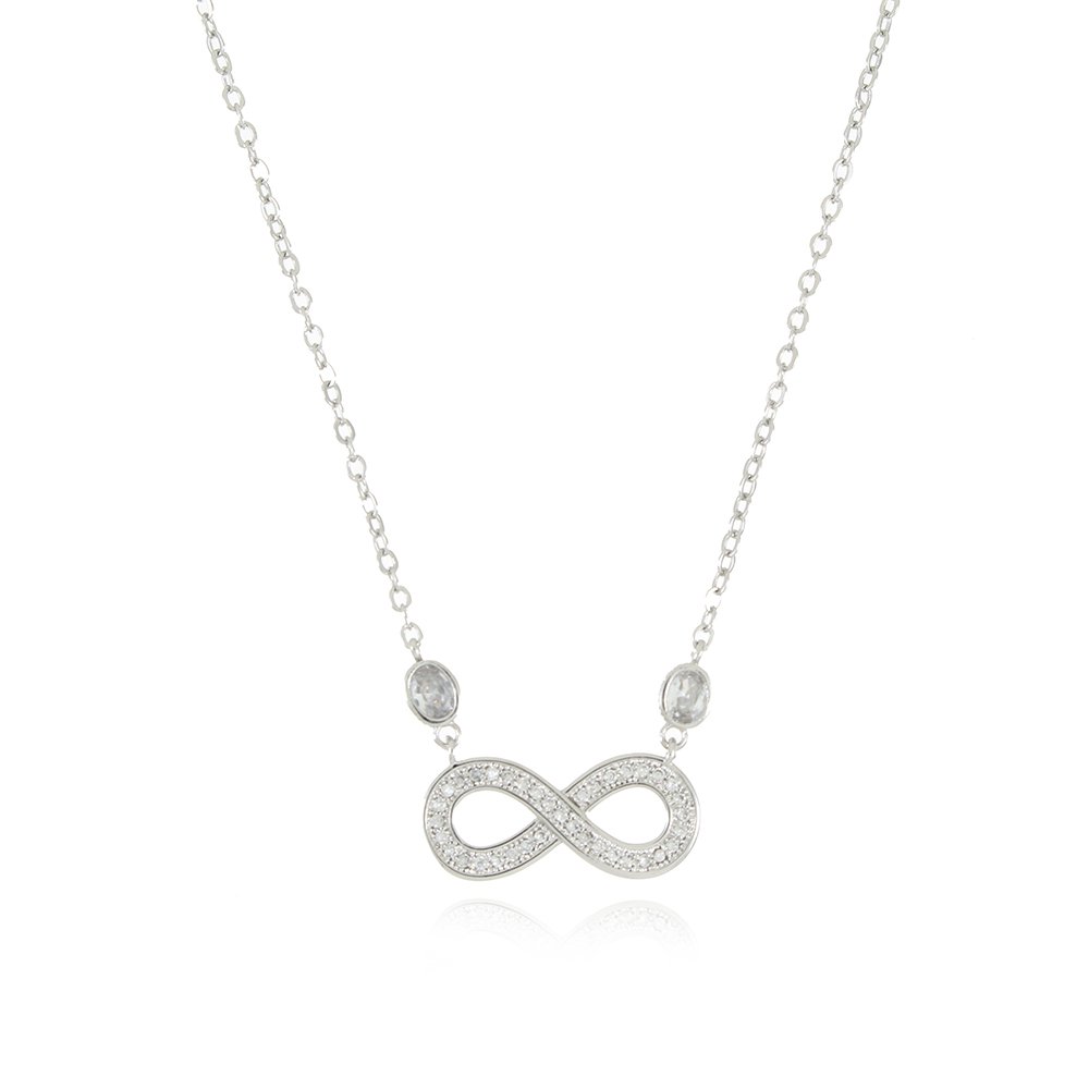 Encante-se com esse colar!Este lindo colar COM SÍMBULO DO INFINITO CRAVEJADO DE ZIRCÔNIAS CRISTAL é feito com LATÃO de alta qualidade.