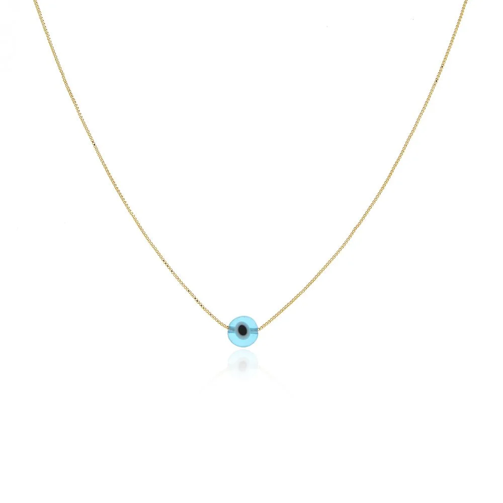 Encante-se com esse colar!Este lindo colar OLHO GREGO AZUL CLARO é feito com LATÃO BANHADO A OURO 18K de alta qualidade.