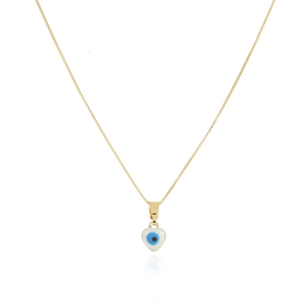 Encante-se com esse colar!Este lindo colar OLHO GREGO DE CORAÇÃO BRANCO é feito com LATÃO BANHADO A OURO 18K de alta qualidade.