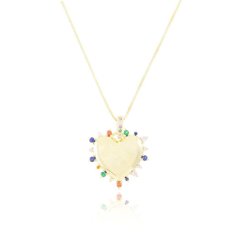Clti-1697-Fo Colar De Coração Cravejado Colorido (45cm+5cm).