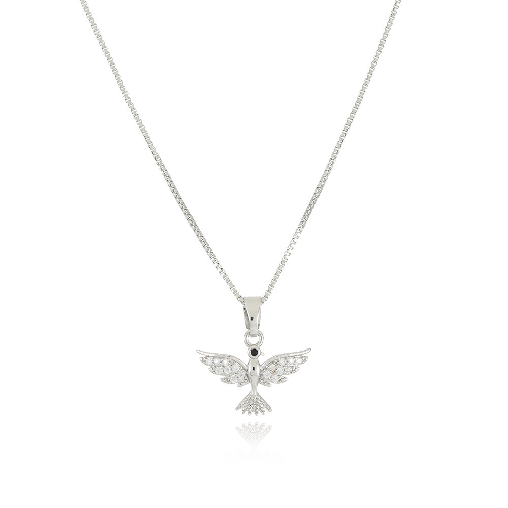 Clti-1809-Rd Colar Religioso De Espírito Santo Cravejado De Zircônias Cristal - Ródio Branco (45cm+5cm).