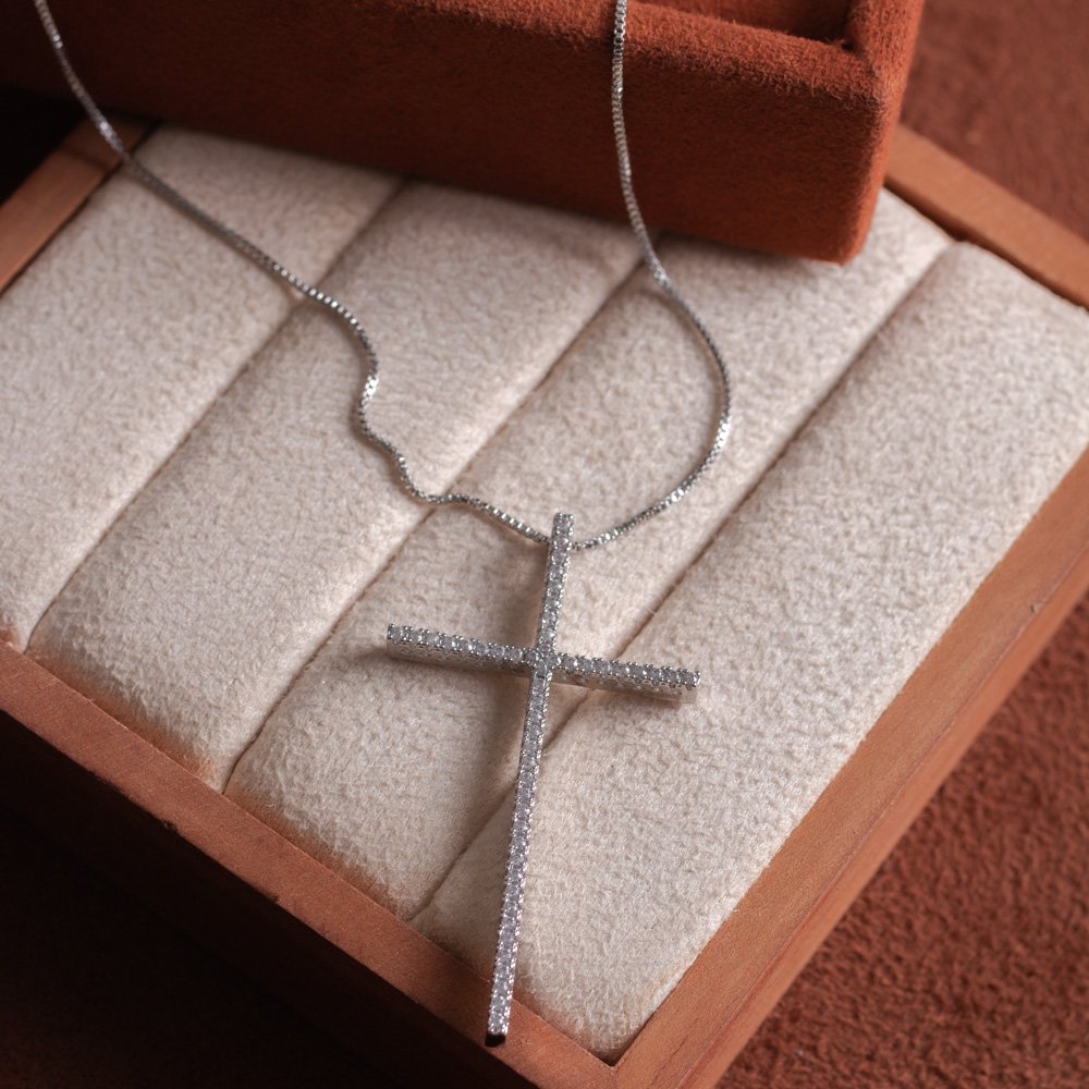 Encante-se com esse colar!Este lindo colar DE CRUZ CRAVEJADO CRISTAL é feito com LATÃO BANHADO A RÓDIO BRANCO de alta qualidade.