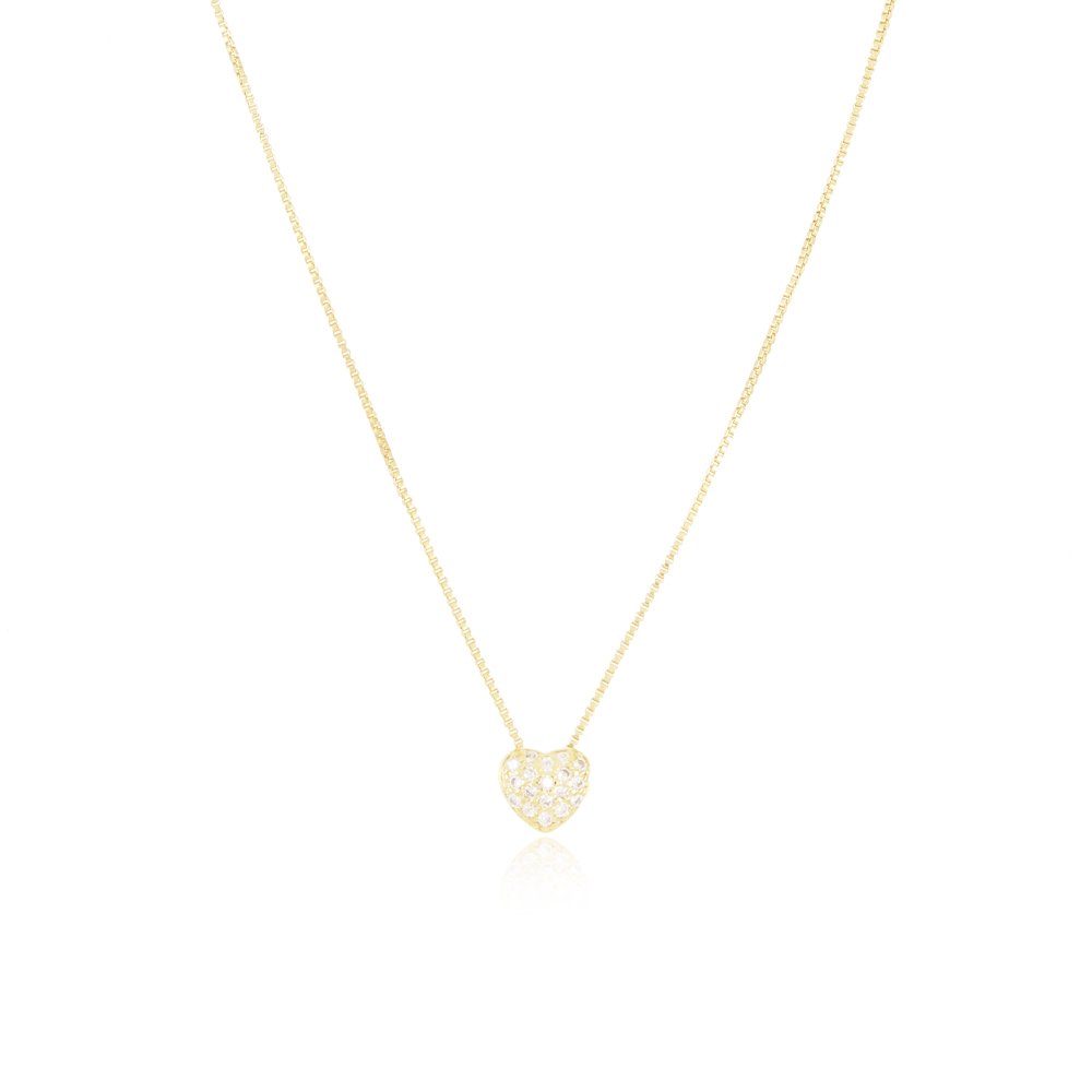 Encante-se com esse colar!Este lindo colar COM PINGENTE DE CORAÇÃO CRAVEJADO é feito com LATÃO BANHADO A OURO 18K de alta qualidade.