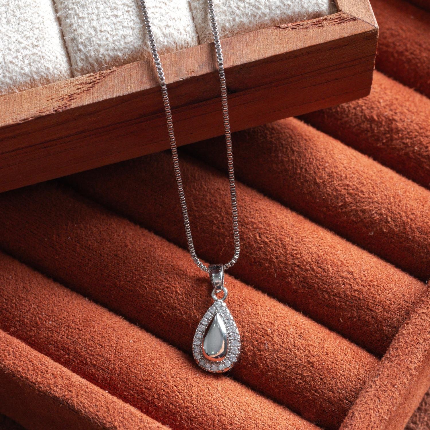 Encante-se com esse colar!Este lindo colar COM PINGENTE DE GOTA CRISTAL é feito com LATÃO BANHADO A RÓDIO BRANCO de alta qualidade.