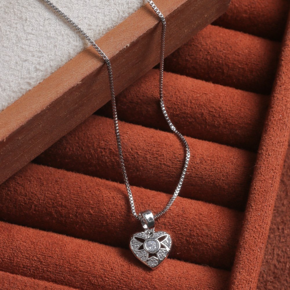 Encante-se com esse colar!Este lindo colar COM PINGENTE DE CORAÇÃO CRAVEJADO CRISTAL é feito com LATÃO BANHADO A RÓDIO BRANCO de alta qualidade.