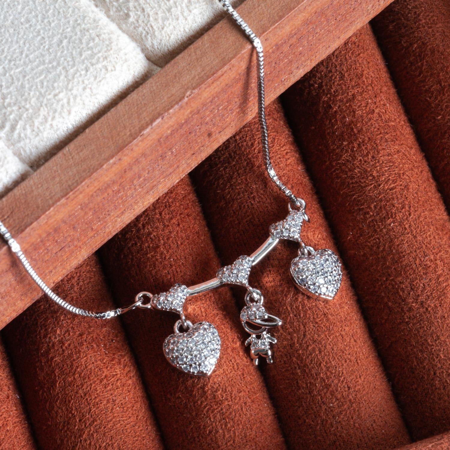 Encante-se com esse colar!Este lindo colar DE CORAÇÃO COM MENINO CRAVEJADO CRISTAL é feito com LATÃO BANHADO A RÓDIO BRANCO de alta qualidade.
