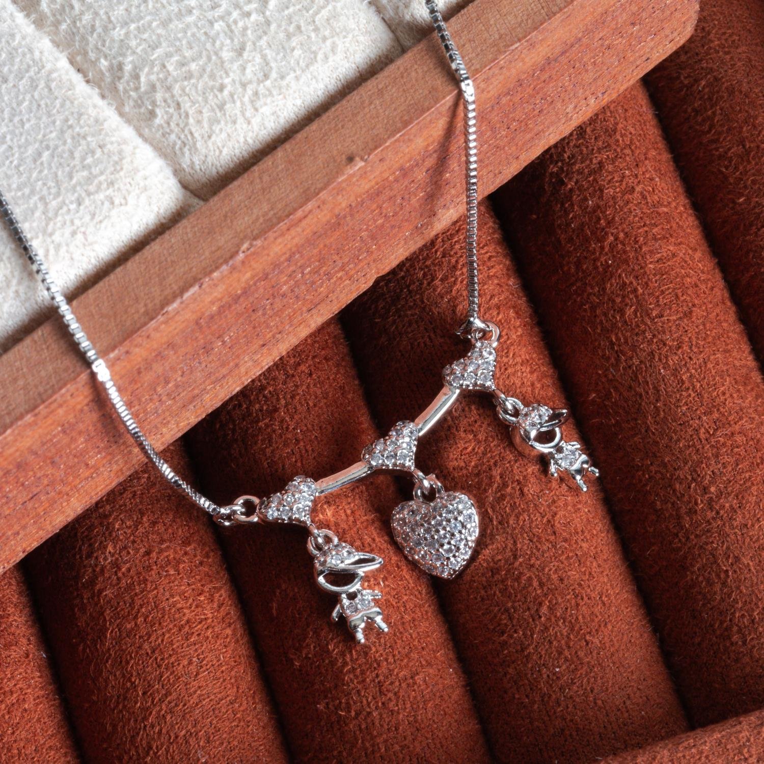 Encante-se com esse colar!Este lindo colar DE CORAÇÃO COM DOIS MENINOS CRAVEJADO CRISTAL é feito com LATÃO BANHADO A RÓDIO BRANCO de alta qualidade.