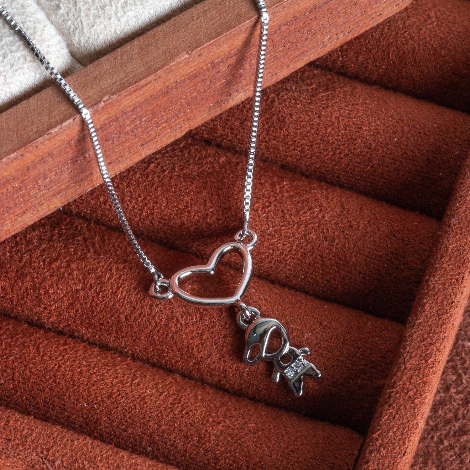 Clti-2015-Rd Colar De Coração Vazado Com Pingente De Menino Cristal - Ródio Branco (21x21cm).