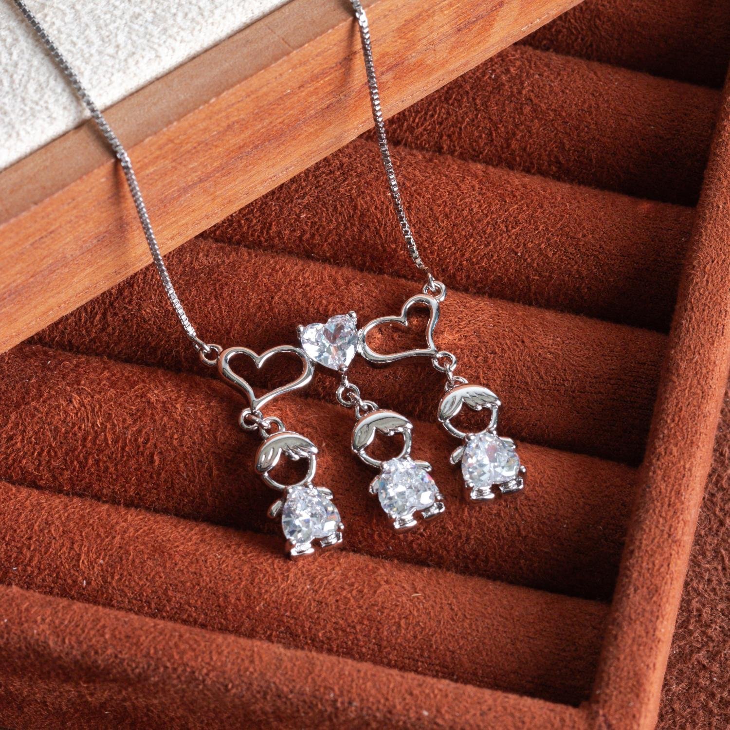 Encante-se com esse colar!Este lindo colar DE CORAÇÕES COM TRÊS MENINOS CRISTAL é feito com LATÃO BANHADO A RÓDIO BRANCO de alta qualidade.