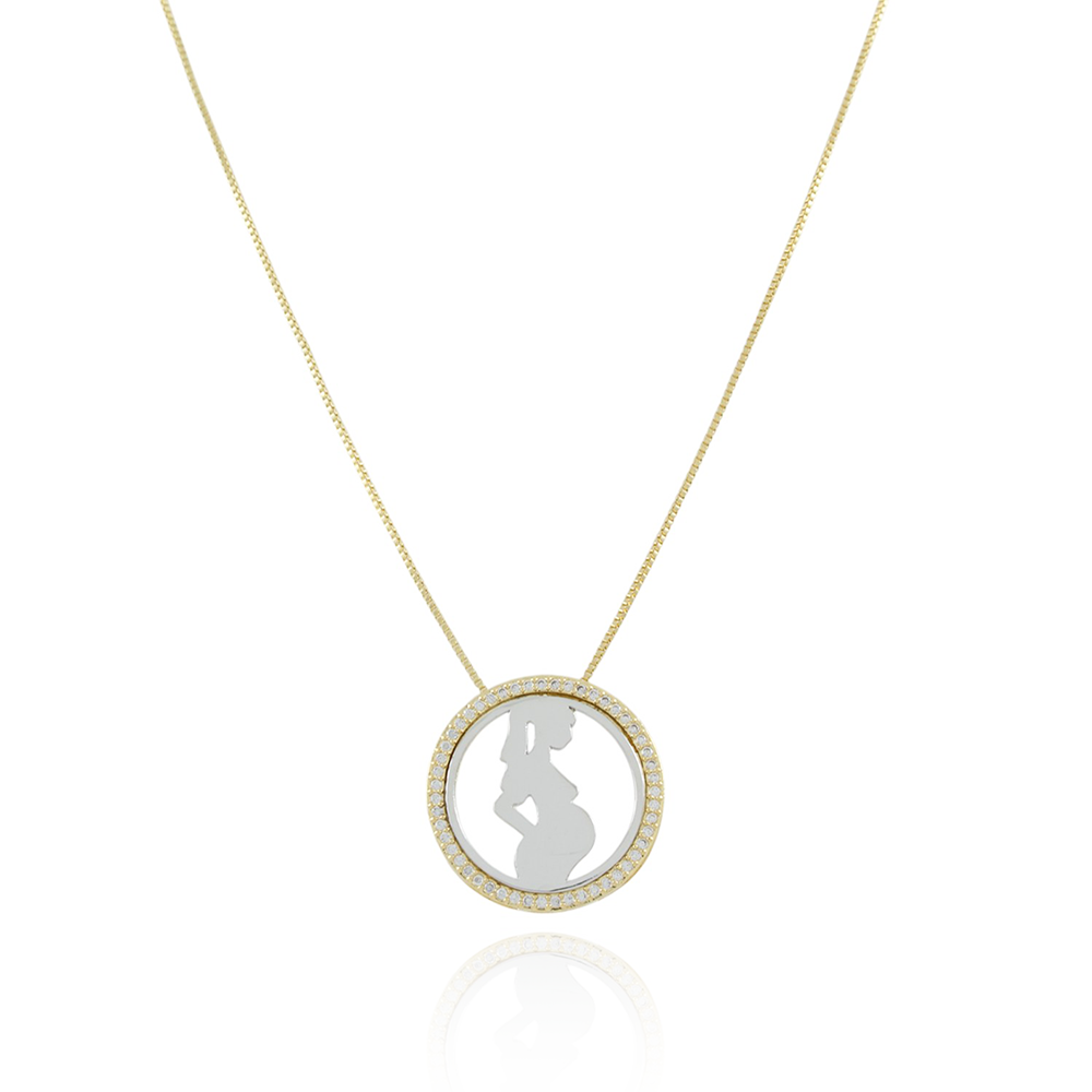Clti-2062-Fo+Rd Colar Mãe Gravida Cristal - Ouro 18k + Ródio Branco (45cm+5cm).