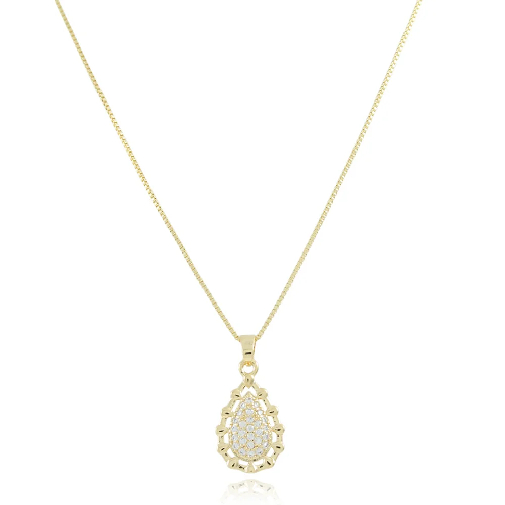 Encante-se com esse colar!Este lindo colar GOTA CRAVEJADO CRISTAL é feito com LATÃO BANHADO A OURO 18K de alta qualidade.