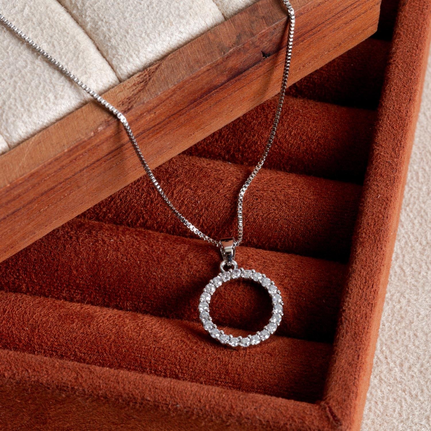 Encante-se com esse colar!Este lindo colar COM PINGENTE CRAVEJADO DE ZIRCÔNIAS CRISTAIS é feito com LATÃO BANHADO A RÓDIO BRANCO de alta qualidade.