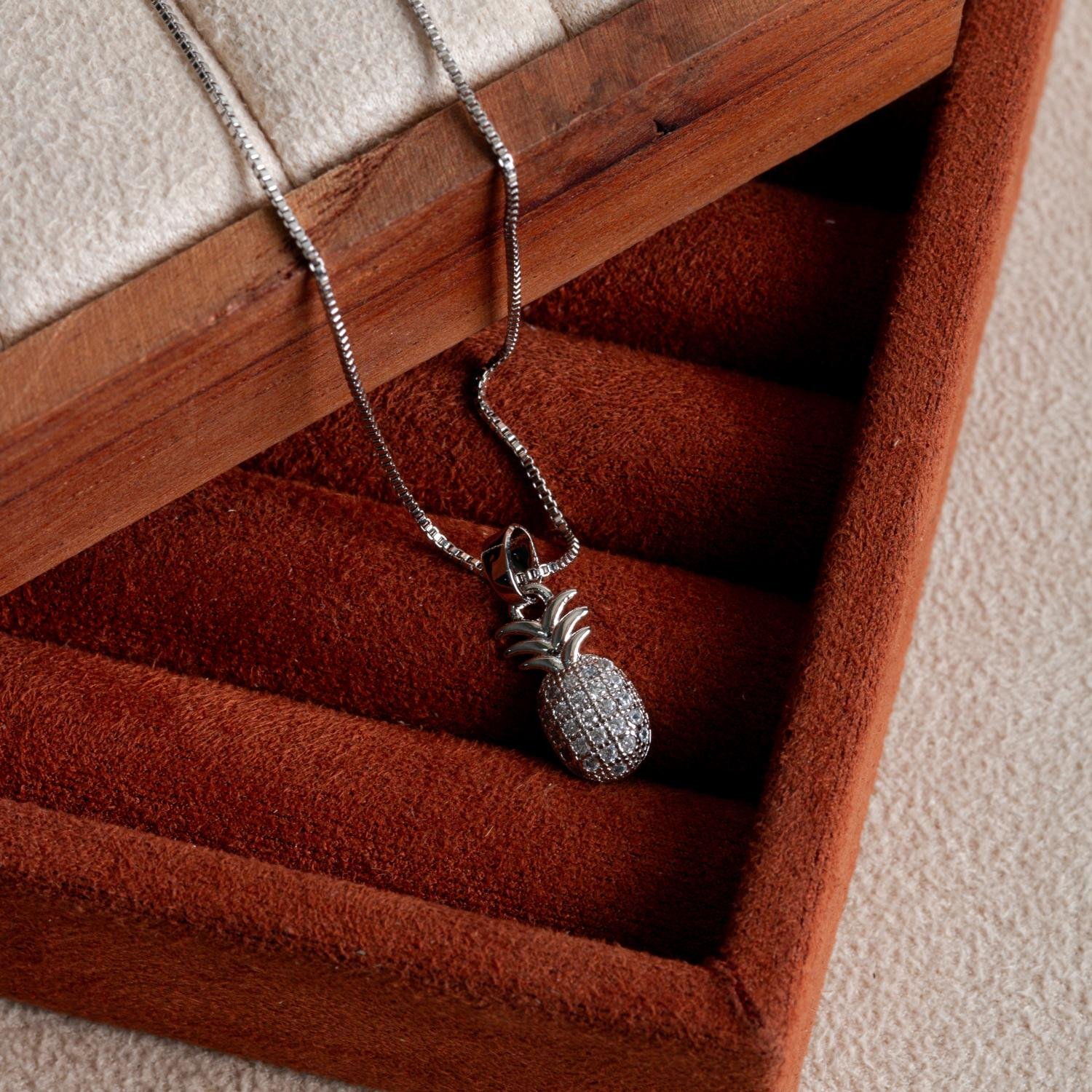 Encante-se com esse colar!Este lindo colar COM PINGENTE DE ABACAXI CRISTAL é feito com LATÃO BANHADO A RÓDIO BRANCO de alta qualidade.