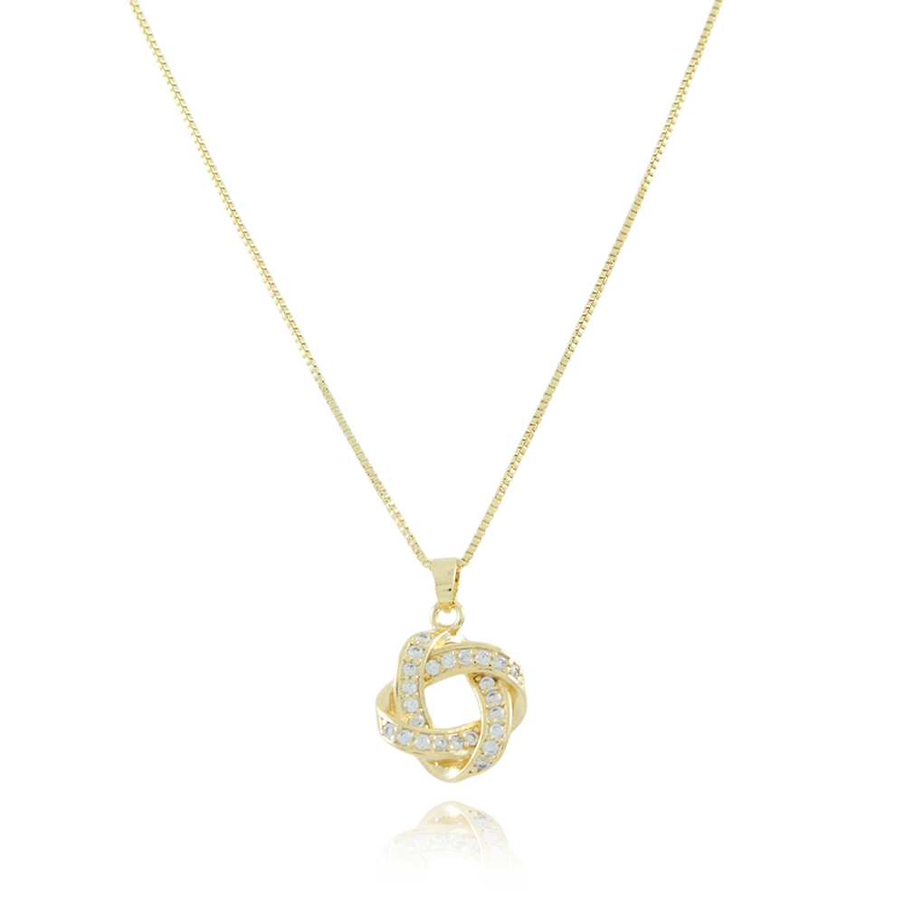 Encante-se com esse colar!Este lindo colar COM PINGENTE CRAVEJADO DE ZIRCÔNIAS CRISTAIS CRISTAIS é feito com LATÃO BANHADO A OURO 18K de alta qualidade.