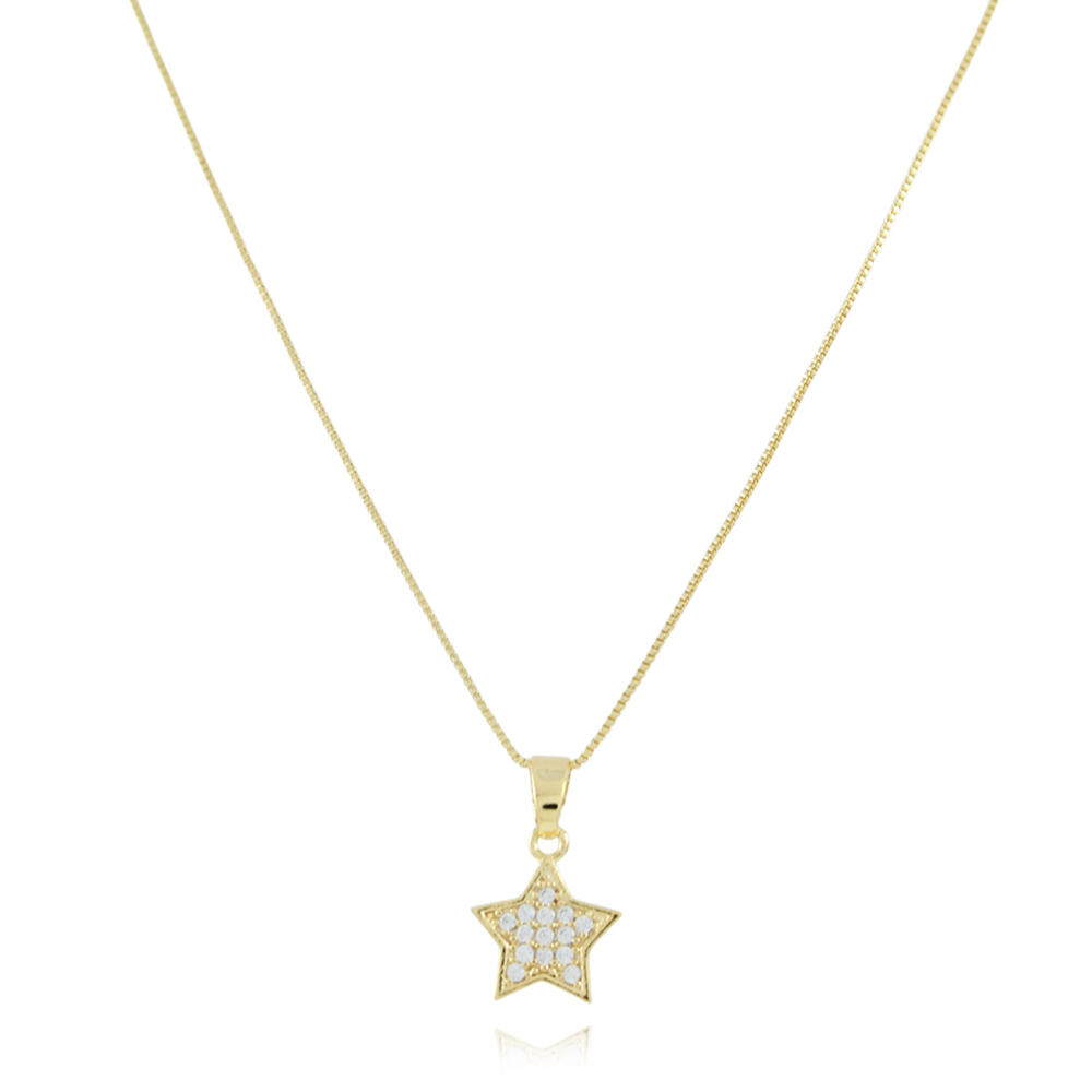 Encante-se com esse colar!Este lindo colar DE ESTRELA CRAVEJADO CRISTAL é feito com LATÃO BANHADO A OURO 18K de alta qualidade.