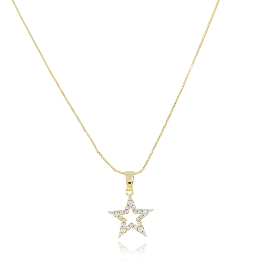 Encante-se com esse colar!Este lindo colar DE ESTRELA VAZADO CRAVEJADO CRISTAL é feito com LATÃO BANHADO A OURO 18K de alta qualidade.