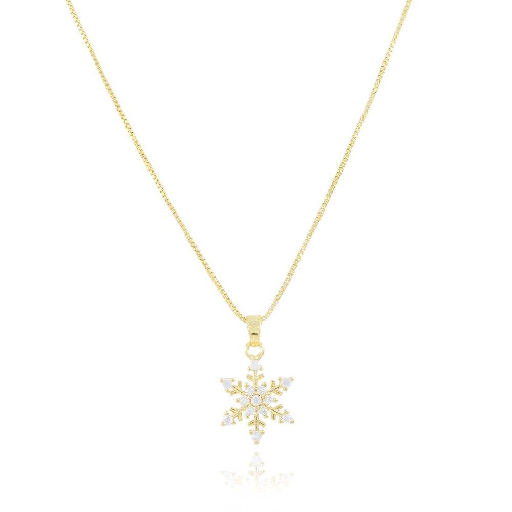 Encante-se com esse colar!Este lindo colar COM PINGENTE DE FLOCO DE NEVE CRAVEJADO CRISTAL é feito com LATÃO BANHADO A OURO 18K de alta qualidade.
