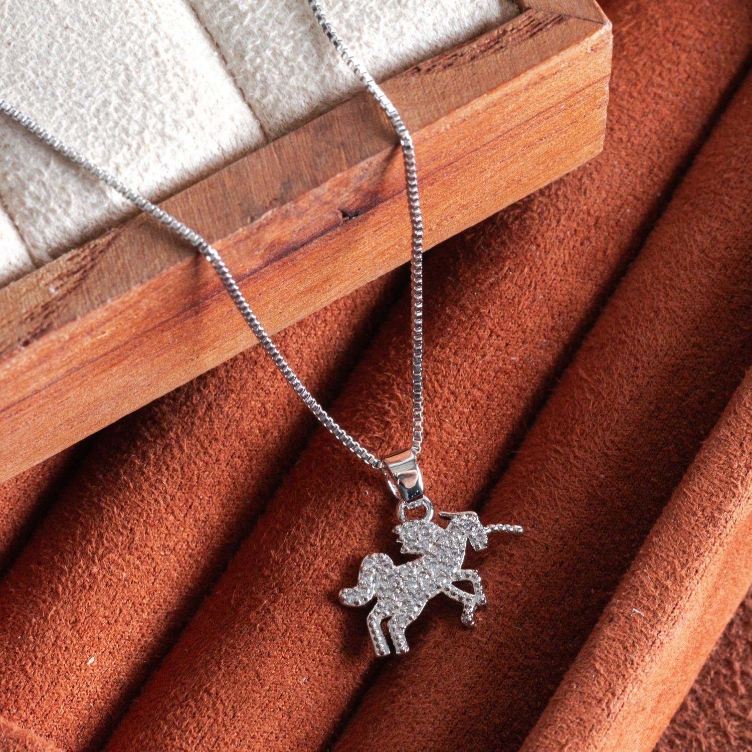 Encante-se com esse colar!Este lindo colar UNICÓRNIO CRAVEJADO CRISTAL é feito com LATÃO BANHADO A RÓDIO BRANCO de alta qualidade.