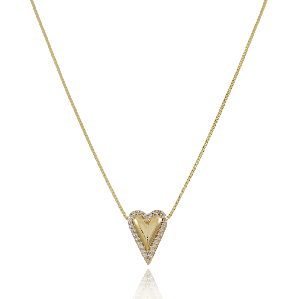 Encante-se com esse colar!Este lindo colar DE CORAÇÃO CRAVEJADO DE ZIRCÔNIAS CRISTAIS é feito com LATÃO BANHADO A OURO 18K de alta qualidade.
