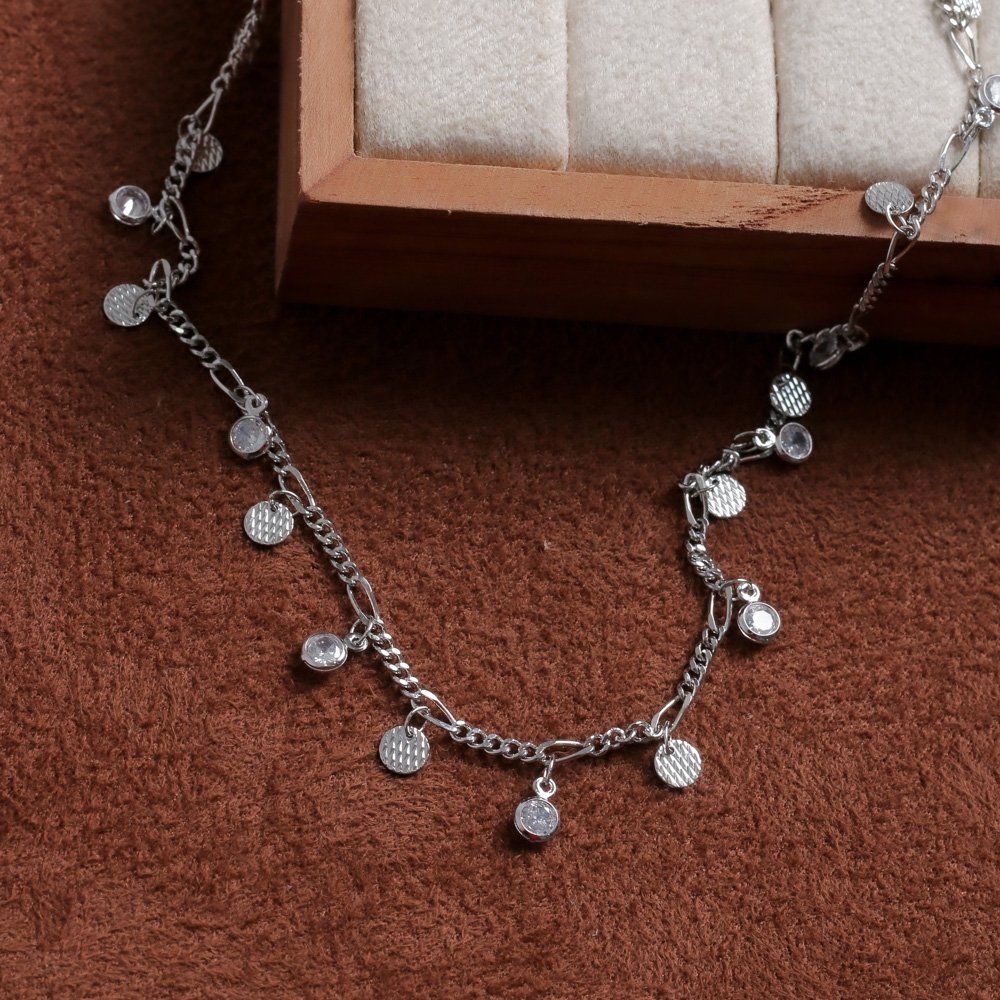 Encante-se com esse colar!Este lindo colar CHOKER COM ZIRCÔNIAS E BOLINHAS PLANA é feito com LATÃO BANHADO A RÓDIO BRANCO de alta qualidade.