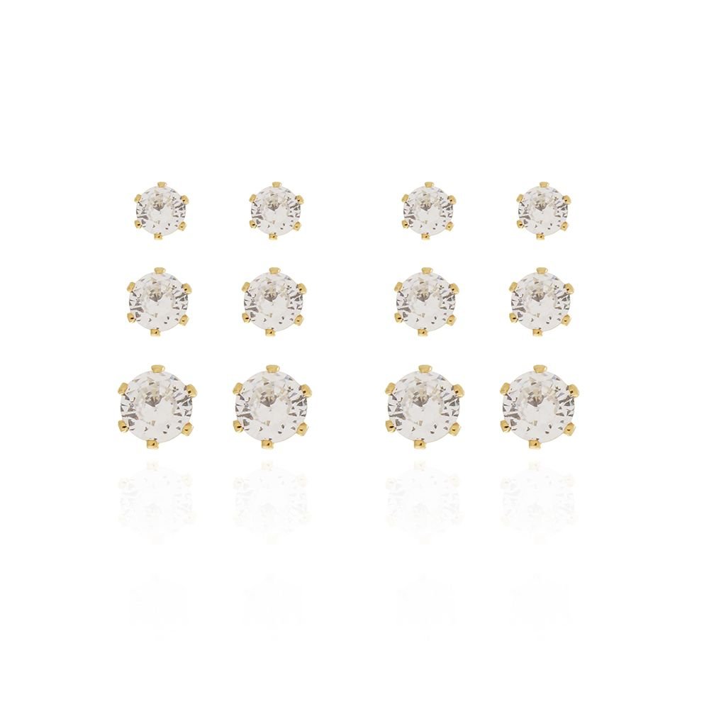 Este lindo brinco CARTELA DE BRINCOS COM 6 PARES CRISTAIS é feito com LATÃO BANHADO A OURO 18K de alta qualidade.