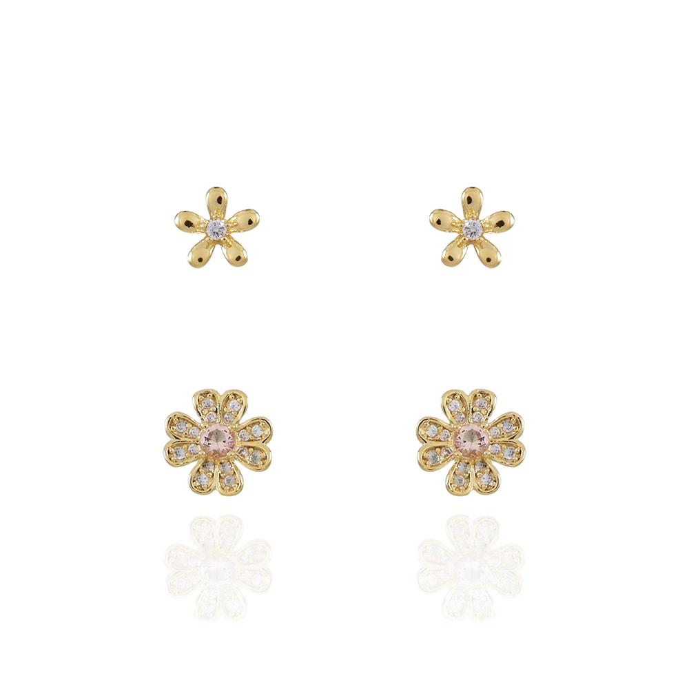 Duplo-106-Do Brinco Duplo De Flores Cravejados Morganita + Cristal.