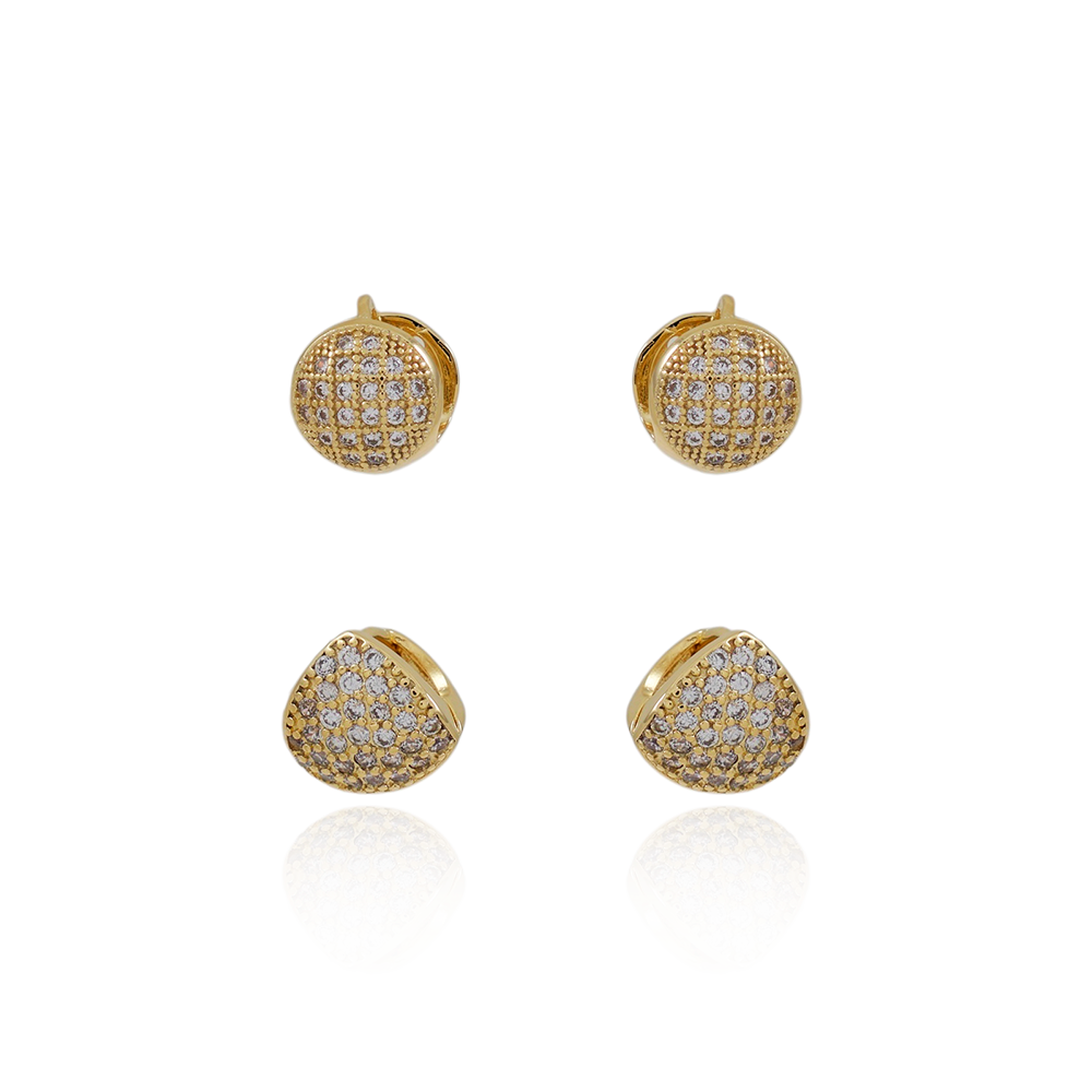 Encante-se com esse brinco!Este lindo brinco DUPLO ARTICULADO CRAVEJADO CRISTAL é feito com LATÃO BANHADO A OURO 18K de alta qualidade.