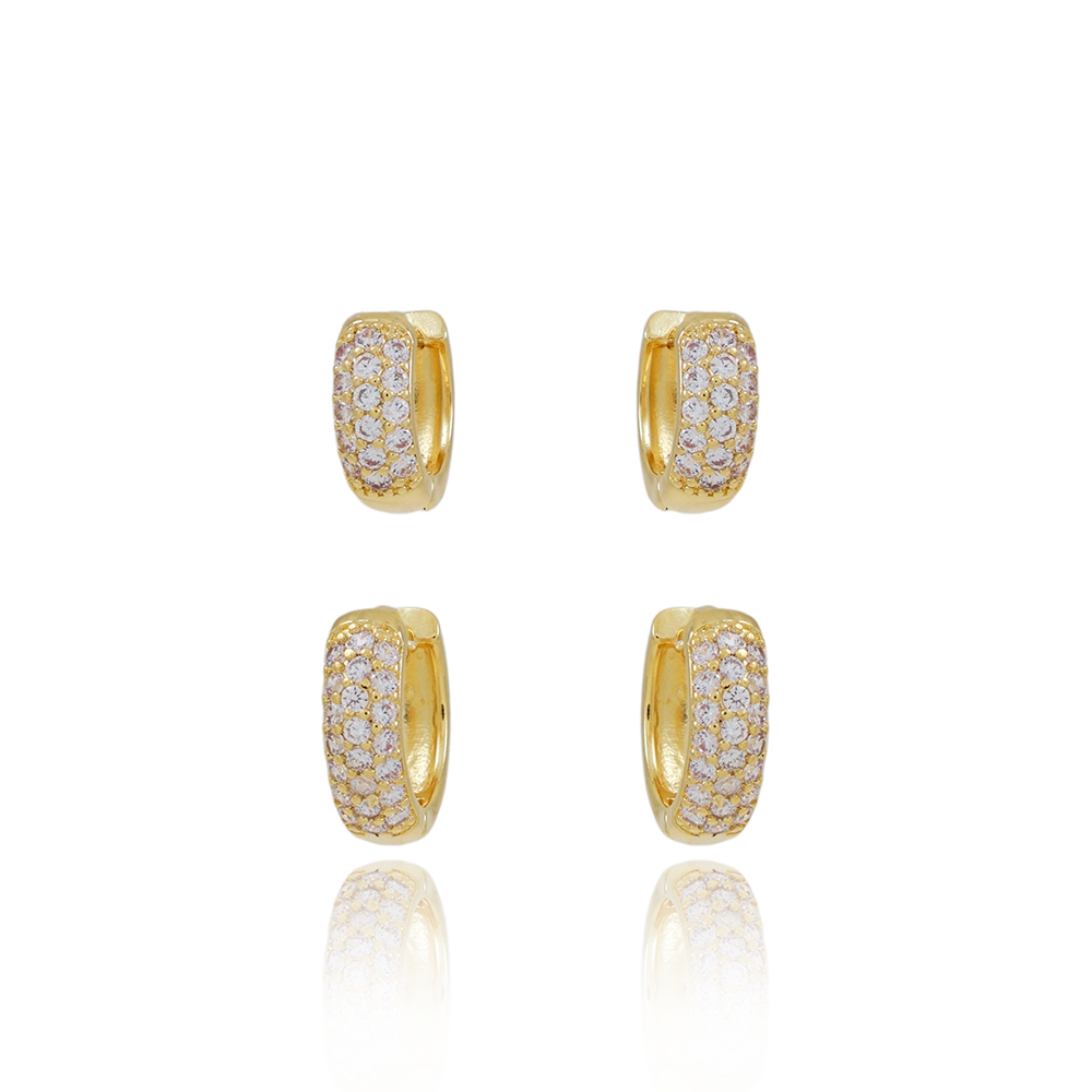 Encante-se com esse brinco!Este lindo brinco DUPLO DE ARGOLAS ARTICULADAS CRAVEJADOS CRISTAL é feito com LATÃO BANHADO A OURO 18K de alta qualidade.
