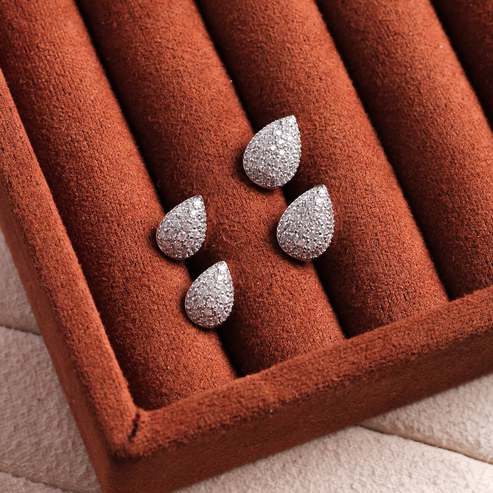 Duplo-47-Rd Brinco Duplo De Gota Cravejada De Zircônias Cirstais - Ródio Branco.&Nbsp;