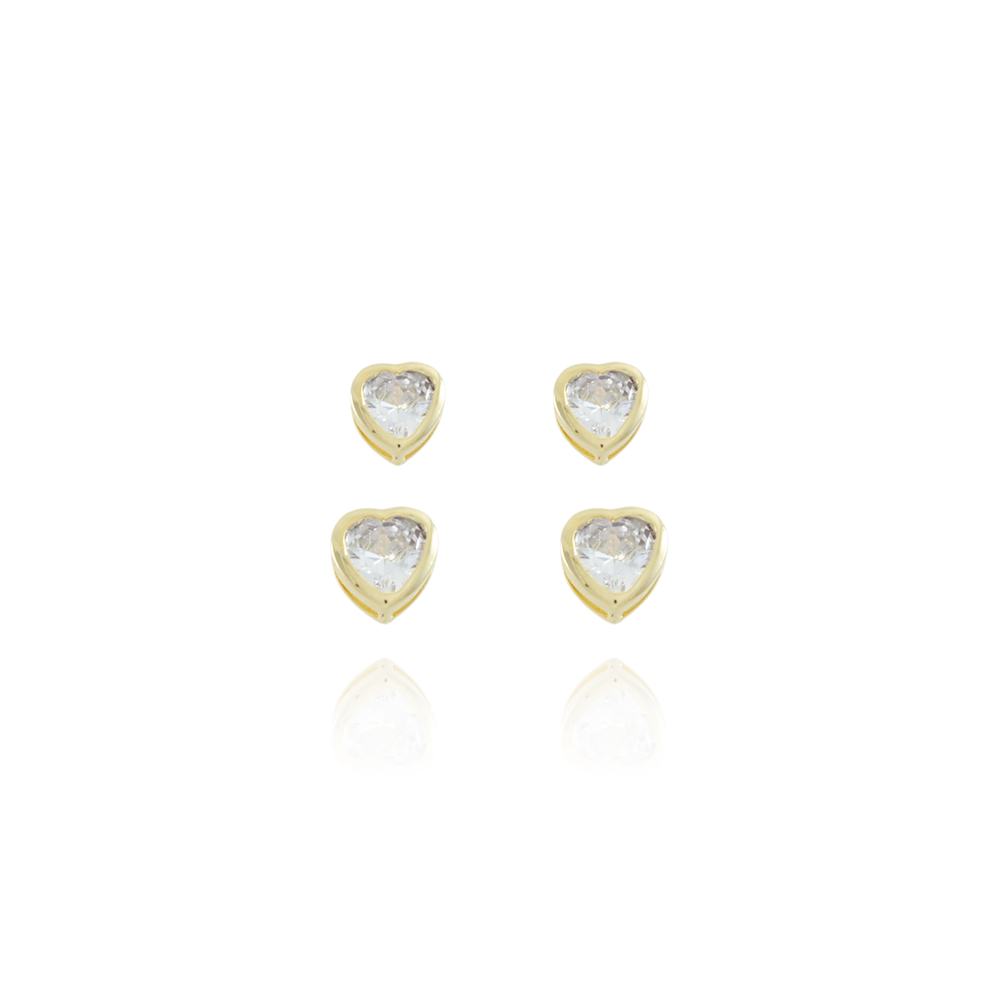 Encante-se com esse brinco!Este lindo brinco DUPLO DE CORAÇÃO CRISTAL é feito com LATÃO BANHADO A OURO 18K de alta qualidade.