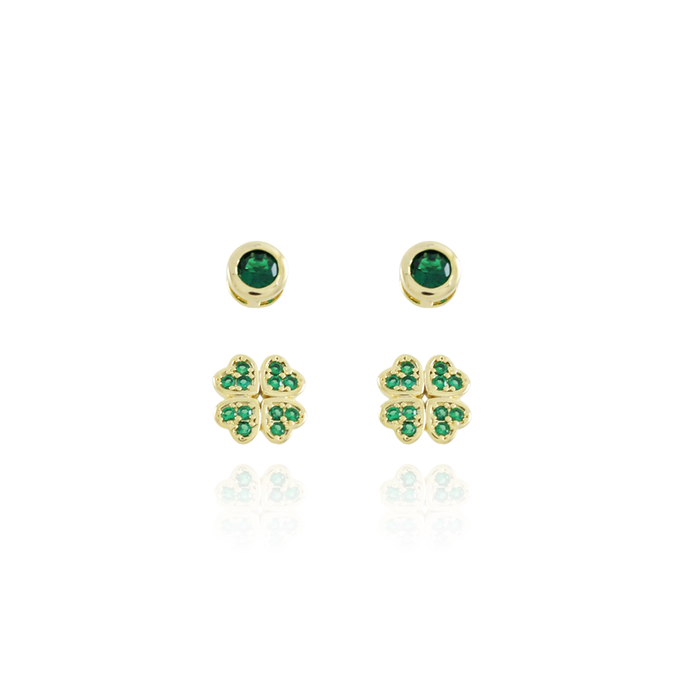 Encante-se com esse brinco!Este lindo brinco DUPLO PONTO DE LUZ E TREVO VERDE ESMERALDA é feito com LATÃO BANHADO A OURO 18K de alta qualidade.