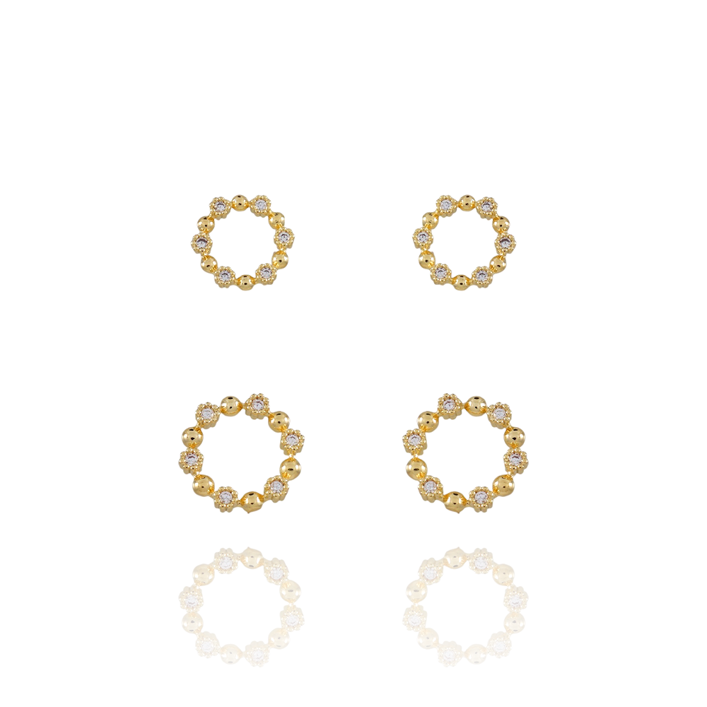 Encante-se com esse brinco!Este lindo brinco DUPLO VAZADO CRAVEJADO DE ZIRCÔNIAS CRISTAIS é feito com LATÃO BANHADO A OURO 18K de alta qualidade.