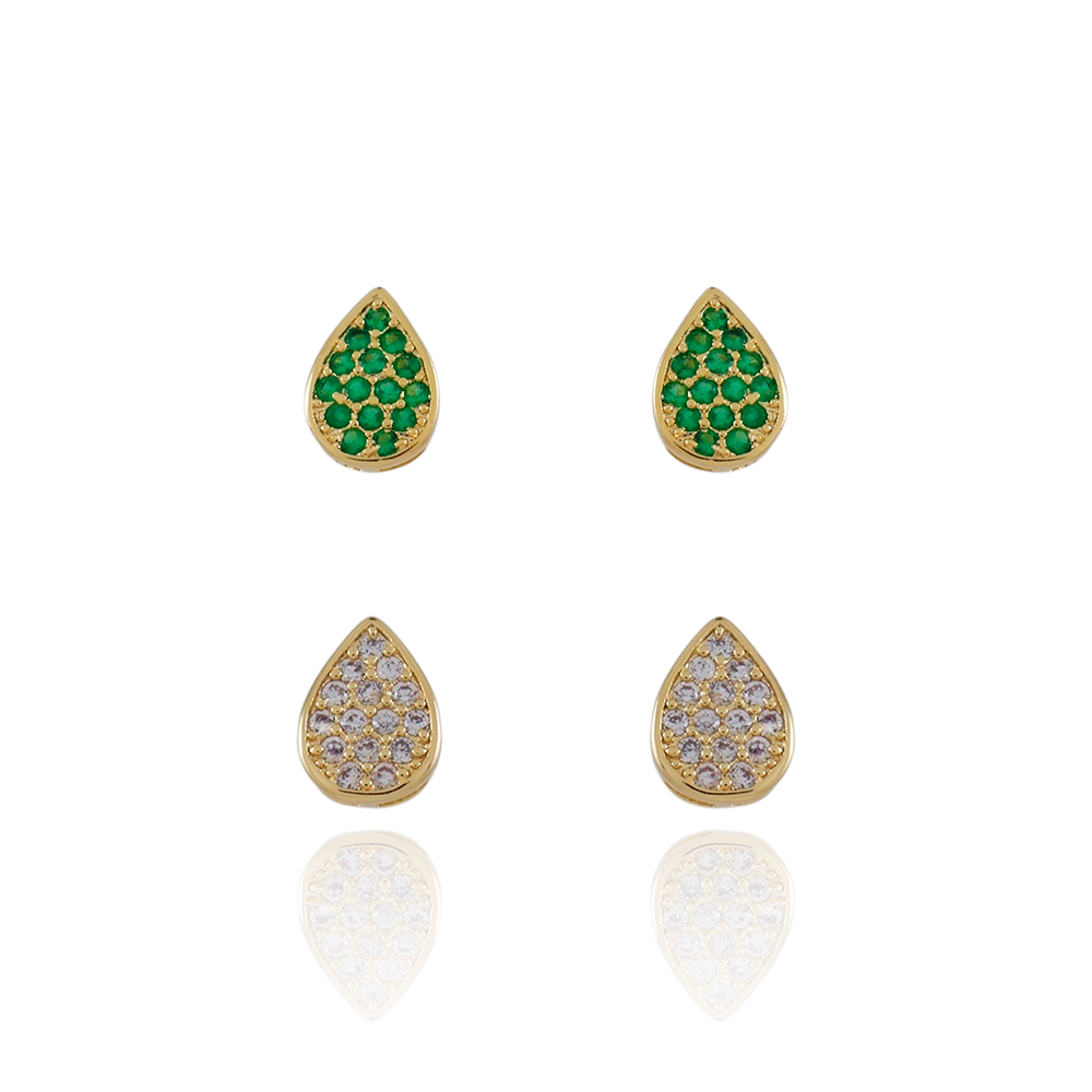 Encante-se com esse brinco!Este lindo brinco DUPLO DE GOTA CRAVEJADOS CRISTAL + VERDE ESMERALDA é feito com LATÃO BANHADO A OURO 18K de alta qualidade.