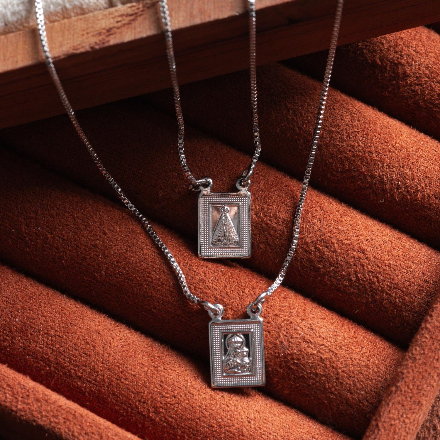 Encante-se com esse escapulário!Este lindo escapulário NOSSA SENHORA DO CARMO E NOSSA SENHORA APARECIDA é feito com LATÃO BANHADO A RÓDIO BRANCO de alta qualidade.