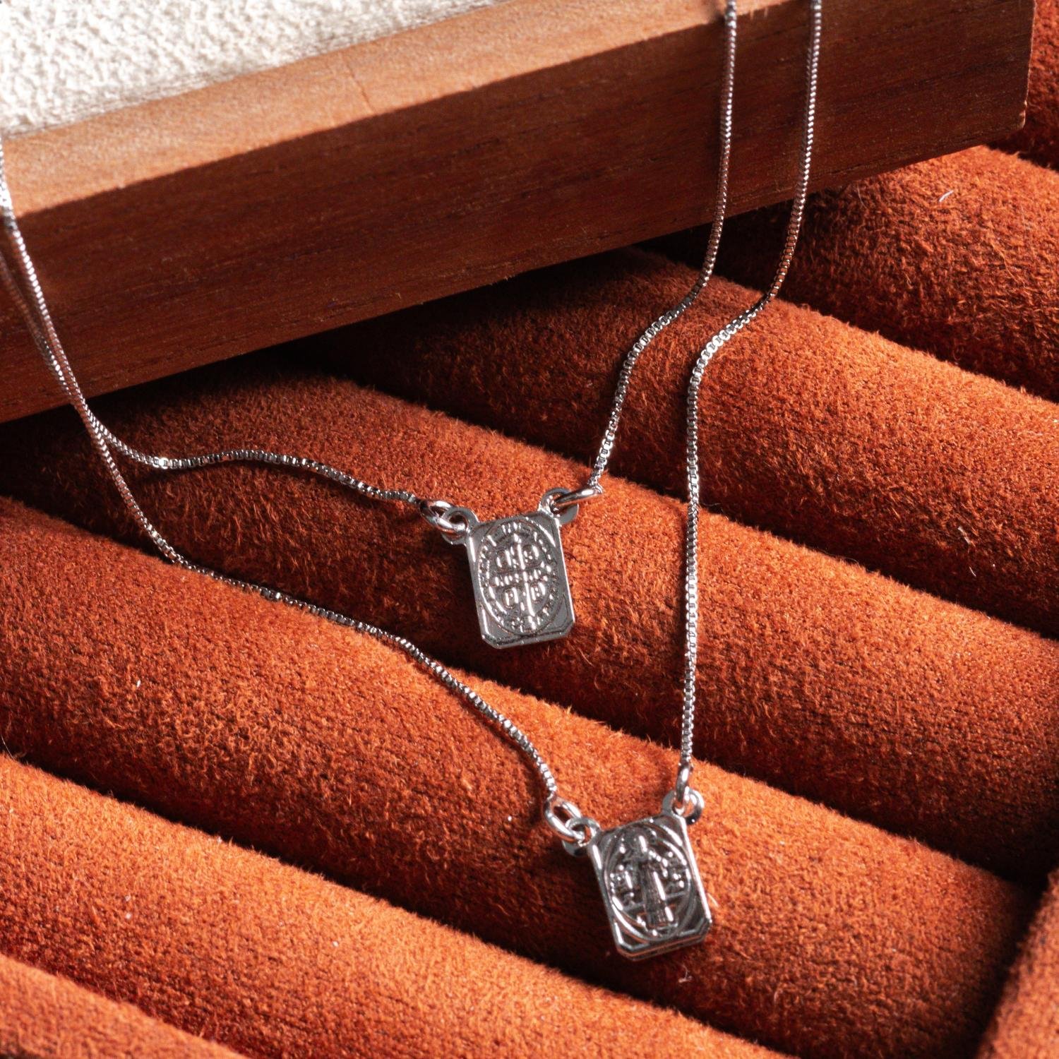 Encante-se com esse escapulário!Este lindo escapulário SÃO BENTO é feito com LATÃO BANHADO A RÓDIO BRANCO de alta qualidade.