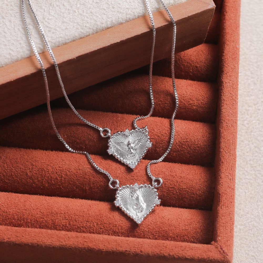 Encante-se com esse escapulário!Este lindo escapulário DE CORAÇÃO ESPÍRITO SANTO E MÃO COM TERÇO é feito com LATÃO BANHADO A RÓDIO BRANCO de alta qualidade.