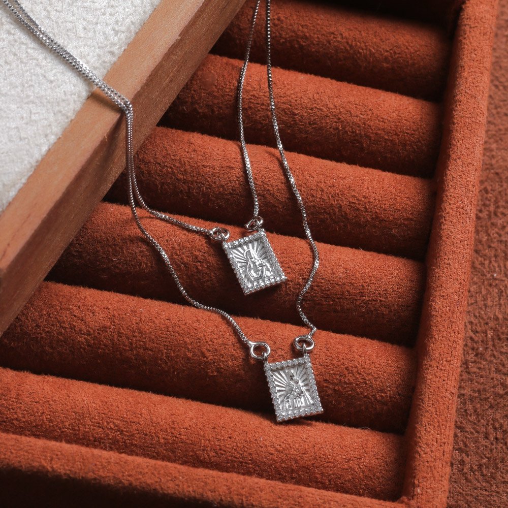 Encante-se com esse escapulário!Este lindo escapulário CRAVEJADO SAGRADO CORAÇÃO DE JESUS E NOSSA SENHORA DO CARMO é feito com LATÃO BANHADO A RÓDIO BRANCO de alta qualidade.