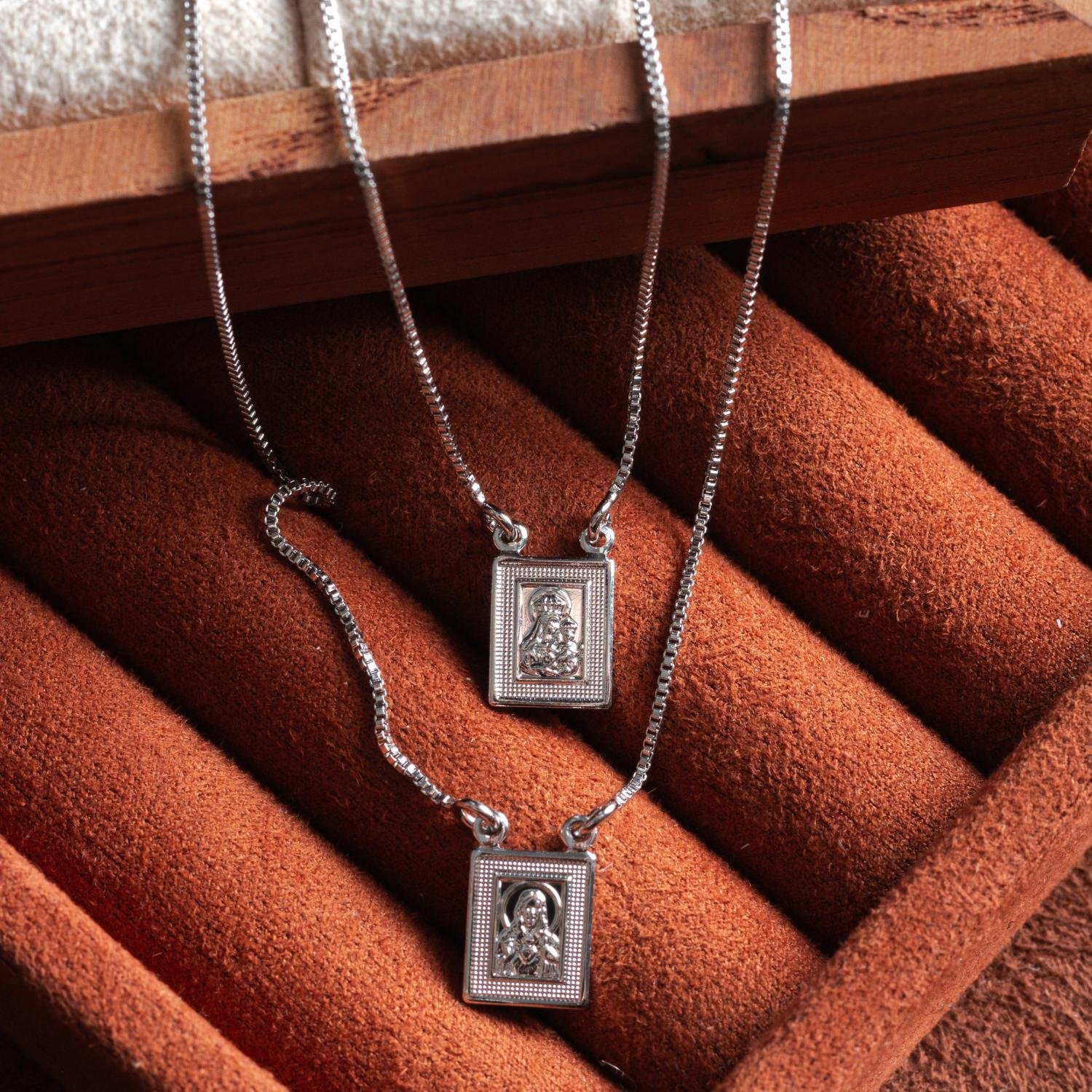 Encante-se com esse escapulário!Este lindo escapulário SAGRADO CORAÇÃO DE JESUS E NOSSA SEMHORA DO CARMO é feito com LATÃO BANHADO A RÓDIO BRANCO de alta qualidade.