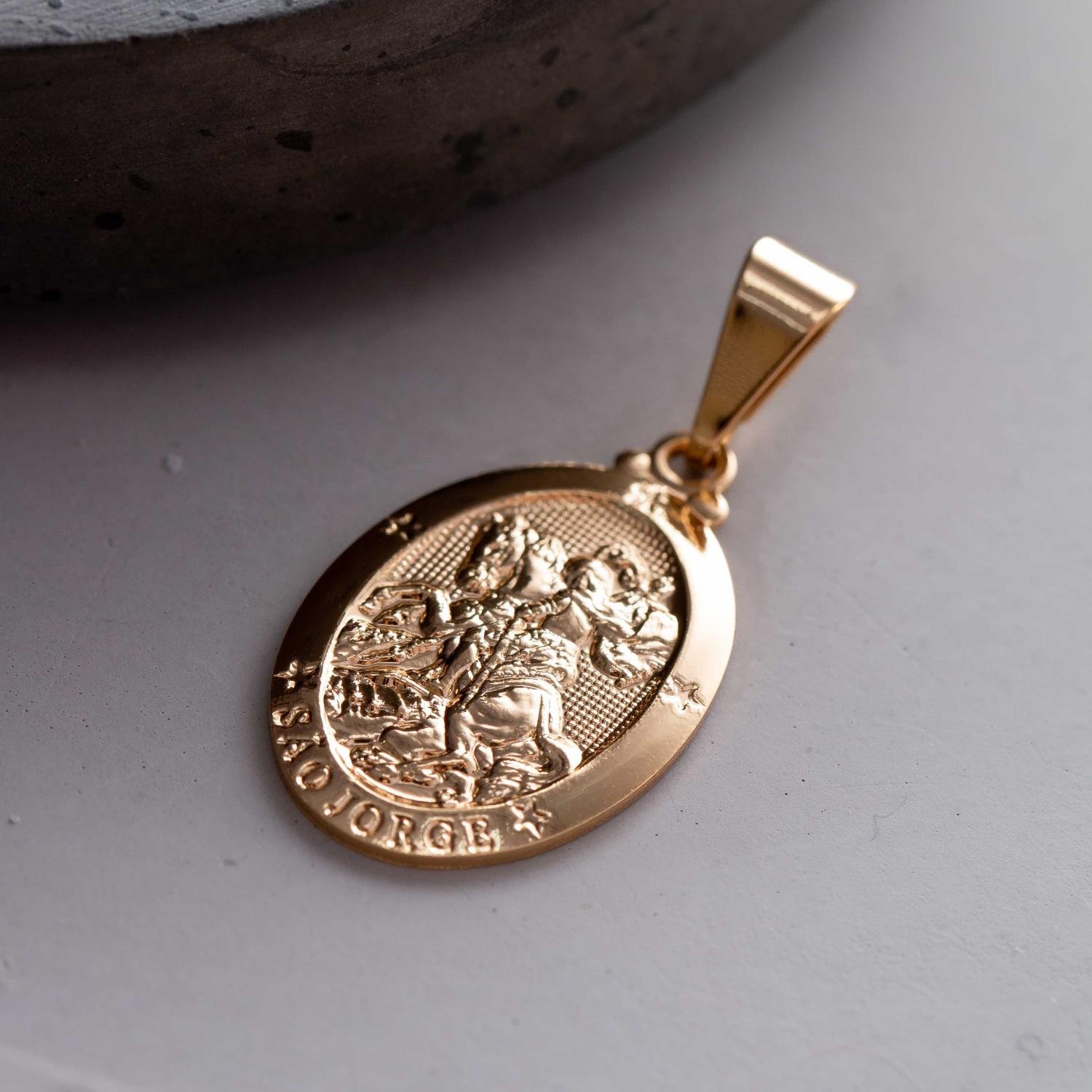 Encante-se com esse pingente!Este lindo pingente MEDALHA DE SÃO JORGE é feito com LATÃO BANHADO A OURO 18K de alta qualidade.