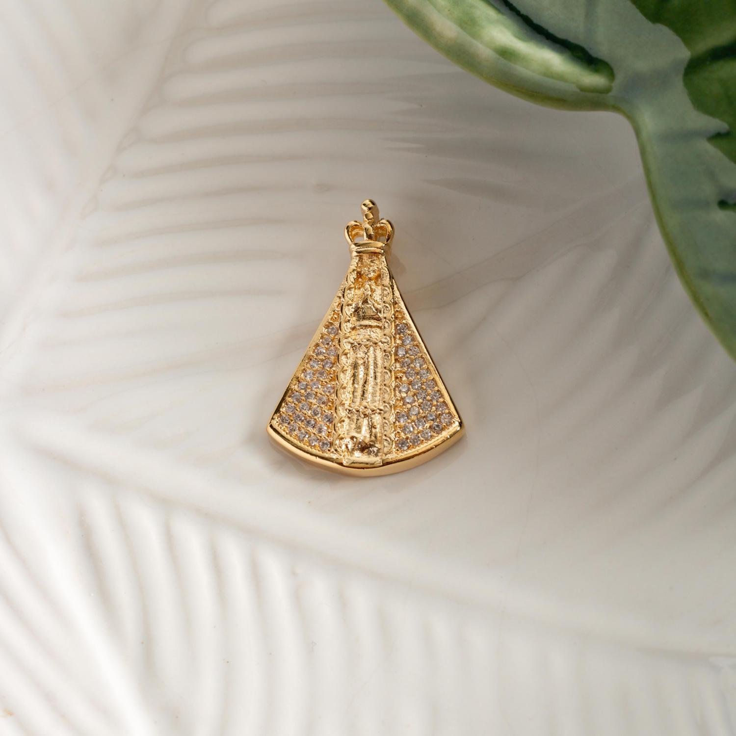 Pgt-427-Fo Pingente De Nossa Senhora Aparecida Cravejado De Zircônias Cristais.