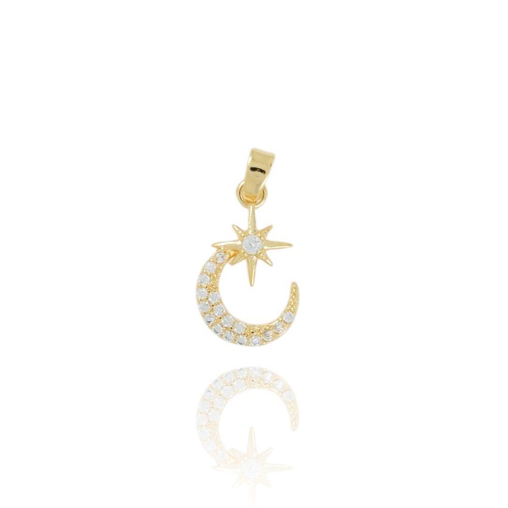 Pgt-454-Fo Pingente De Lua E Estrela Cravejado De Zircônias Cristais.
