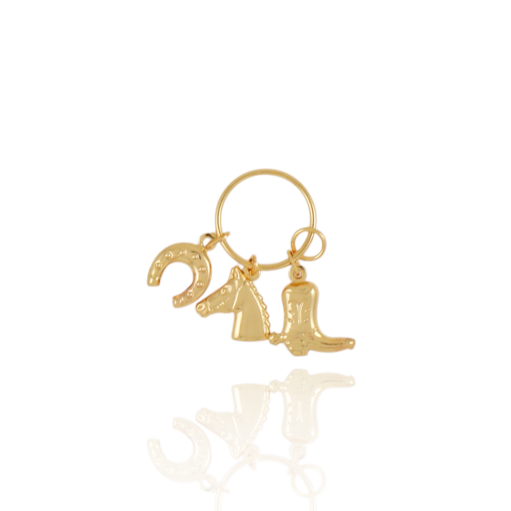 Encante-se com esse pingente!Este lindo pingente MIX FERRADURA, CAVALO E BOTA é feito com LATÃO BANHADO A OURO 18K de alta qualidade.