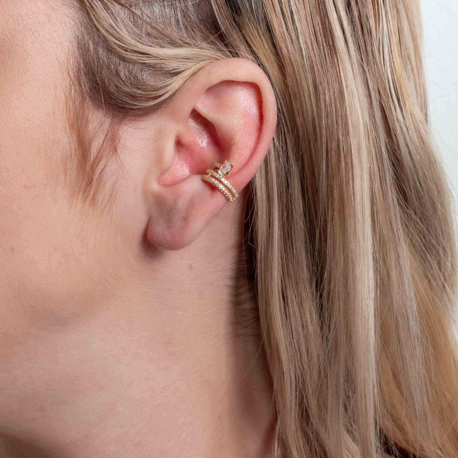 Encante-se com esse piercing!Este lindo piercing FAKE CRAVEJADO DE ZIRCÔNIAS CRISTAIS é feito com LATÃO BANHADO A OURO 18K de alta qualidade.