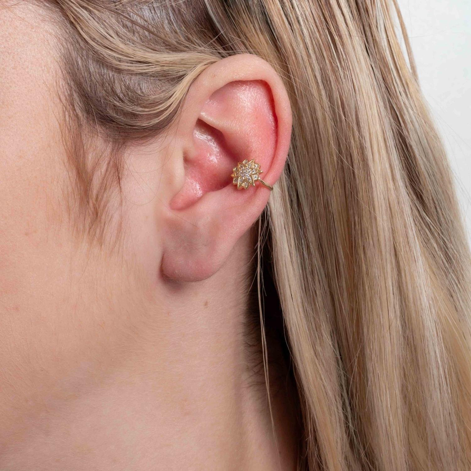 Encante-se com esse piercing!Este lindo piercing FAKE DE ESTRELAS CRAVEJADO DE ZIRCÔNIAS CRISTAIS é feito com LATÃO BANHADO A OURO 18K de alta qualidade.