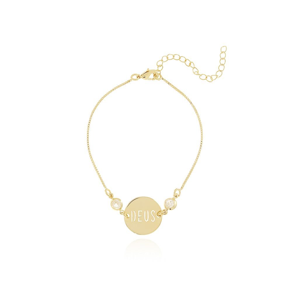 Encante-se com essa pulseira!Esta linda pulseira COM MEDALHA DEUS CRISTAL é feita com LATÃO BANHADO A OURO 18K de alta qualidade.