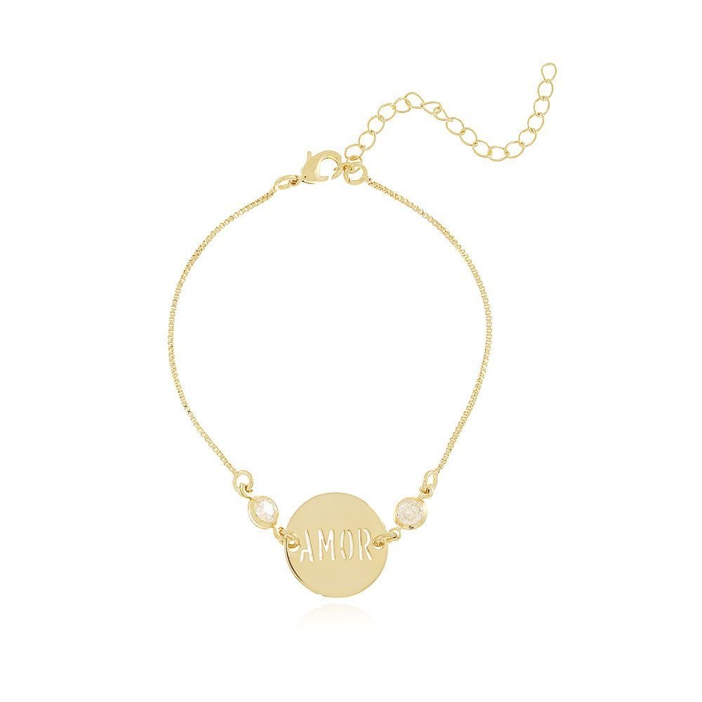 Encante-se com essa pulseira!Esta linda pulseira COM MEDALHA AMOR CRISTAL é feita com LATÃO BANHADO A OURO 18K de alta qualidade.