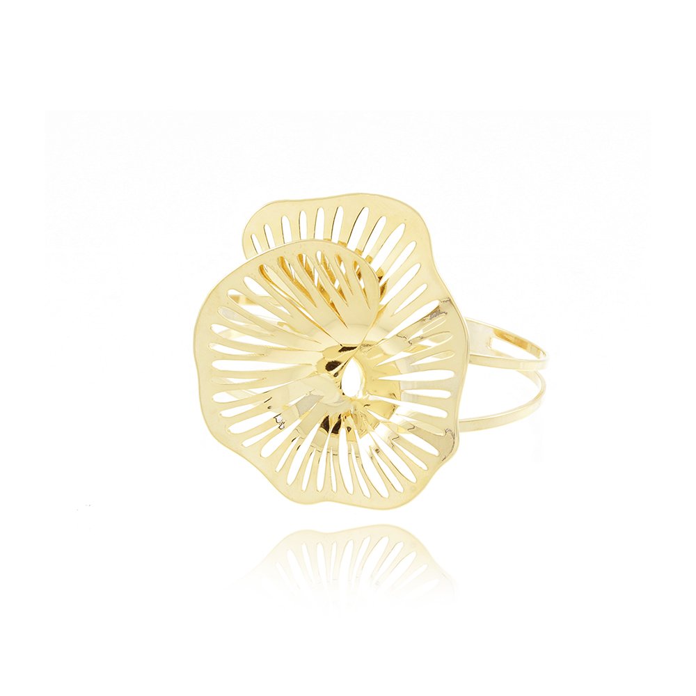 Encante-se com esse bracelete!Este lindo BRACELETE DE FLOR DETALHADA é feito com LATÃO BANHADO A OURO 18K de alta qualidade.
