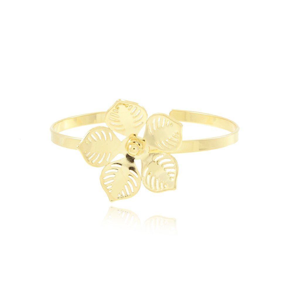 Encante-se com esse bracelete!Este lindo BRACELETE DE FLOR DETALHADA é feito com LATÃO BANHADO A OURO 18K de alta qualidade.