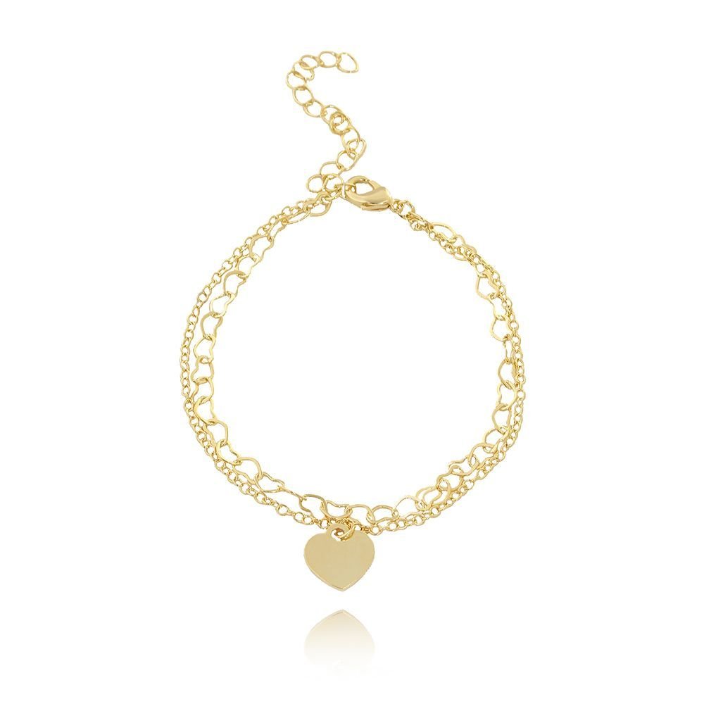 Encante-se com essa pulseira!Esta linda pulseira DUPLA COM PINGENTE DE CORAÇÃO é feita com LATÃO BANHADO A OURO 18K de alta qualidade.
